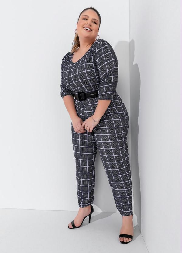Macacão em helanca. Modelo pantacourt com decote U e costas em decote V. Possui mangas 7/8 com punho, elástico na cintura e recorte centralizado nas costas.